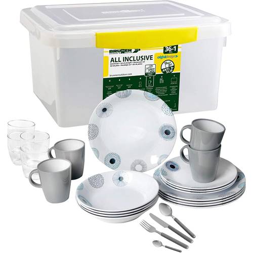 Modell | Brunner Geschirr Set Tuscany | 11 Melamin Geschirrset | Overmont Camping Kochgeschirr Set | Amazon Basics 16-teiliges Geschirrset | Moritz Harmony Design Melamin-Geschirr | Moritz Melamin Camping Geschirr Set | ||