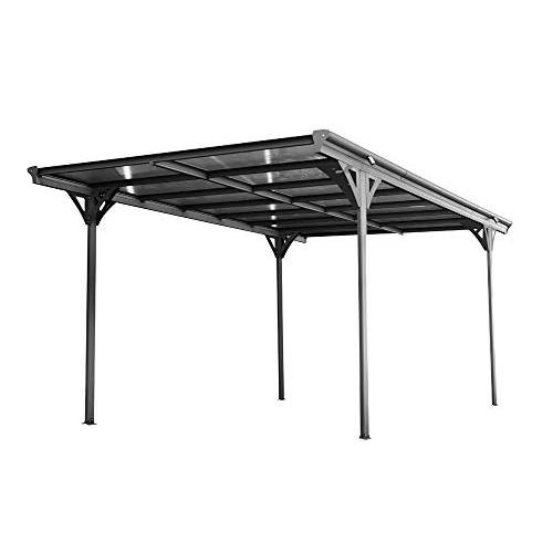 Zu den bemerkenswerten Merkmalen dieses Palram-Carports „Canopia Arcadia“ gehören unseres Erachtens auch zwei Regenrinnen – eine auf jeder Seite.