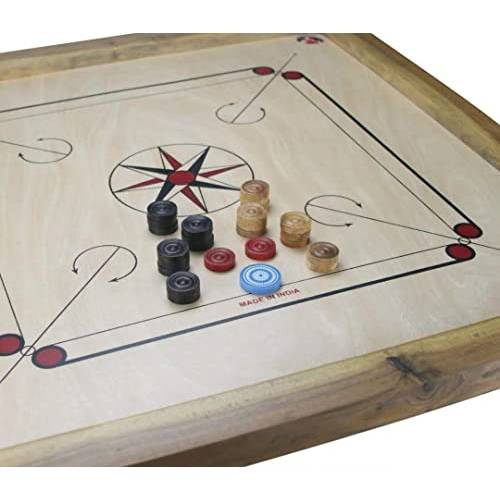 Möchten Sie ein Carrom-Board kaufen, sollten Sie zunächst auf die Größe des Bretts achten. Die offiziellen Maße betragen 74 x 74 cm. Allerdings finden Sie in unserem Carrom-Board-Vergleich auch Bretter mit kleineren oder größeren Maßen.