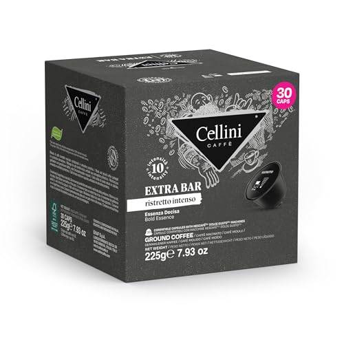 Platz 4 | Cellini Extra Bar Ristretto Intenso Dolce Gusto | ca. 25 € | Arabica- und Robustabohnen | Papierverpackung, Aluminiumkapsel |