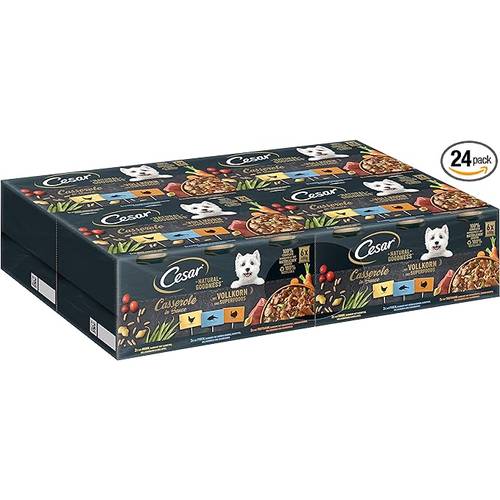Das Nassfutter von Cesar, betitelt als "Cesar Casserole", bietet Hunden eine abwechslungsreiche Ernährung mit unterschiedlichen Geschmacksrichtungen wie Huhn, Fisch und Truthahn. Durch die Beigabe von Vollkorn und Superfoods wird zusätzlich die Versorgung mit wichtigen Nährstoffen angestrebt. Die Portionsgrößen von 400 Gramm eignen sich gut für die tägliche Fütterung und die Multipack-Angebote tragen zur unkomplizierten Vorratshaltung bei. Insgesamt zeigt sich, dass der Hersteller mit seiner Produktreihe auf die Bedürfnisse und Vorlieben verschiedener Hunderassen eingeht und eine ausgewogene Mahlzeit für den Vierbeiner anbietet.