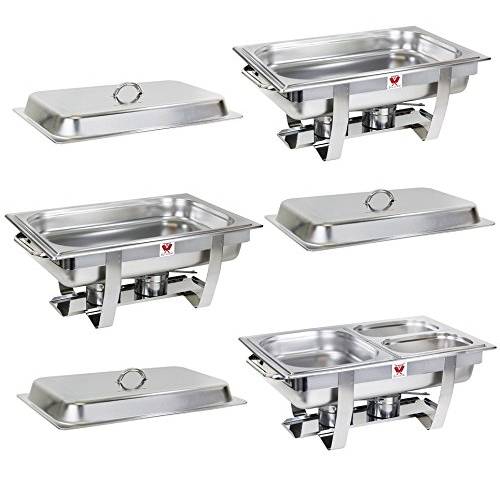Bei einem Buffet für viele Gäste für eine große Feier benötigen Sie meistens mehrere Chafing-Dish-Behälter. Sie können unterschiedliche Speisen im selben Chafing-Dish präsentieren, wenn Sie sich Innenbehälter in verschiedenen Größen besorgen. Ein großer Innenbehälter fasst in der Regel zwischen 9 und 13 l. Sie können mit Innenbehältern von 2 bis 4 l nach Wunsch kleinere Portionierungen in einem einzelnen Chafing-Dish vornehmen. Wenn Sie ein Modell suchen, das vielseitig und sofort einsetzbar ist, empfiehlt es sich, in verschiedenen Chafing-Dish-Tests nach angebotenen Sets zu suchen. Die Größe der Sets ist unterschiedlich, aber Sie erhalten nach Wunsch viele Sets aus mindestens zwei Chafing-Dishes und mehreren Innenbehältern.