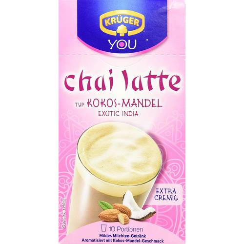 Im klassischen Chai-Tea-Latte-Pulver sind orientalische Gewürze wie schwarzer Pfeffer, Kardamom, Zimt und Ingwer enthalten. Wer es lieber etwas süßer mag, wählt am besten Chai-Pulver mit Vanillegeschmack, wie das Chai-Latte-Pulver von Krüger oder das Chai-Latte-Pulver David Rio.
