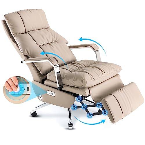 In der Regel sind die Rückenlehnen der Chefsessel gut gepolstert und haben eine integrierte Kopf- und Nackenstütze. Welche Länge für Sie optimal ist, weicht je nach Modell ab. Außerdem hat auch das Verhältnis von Ober- zu Unterkörper einen großen Einfluss darauf, ob der Stuhl passend für Sie ist. Ideal ist, wenn der Sessel bis nahezu Ihrem Kopfende reicht. Probieren Sie, was angenehm für Sie ist. Es gibt auch Chefsessel XXL für große Menschen. Dazu benötigt der Chefsessel eine besonders hohe Rückenlehne. Sessel ab 70-80 cm langen Lehnen sind in unserem Chefsessel-Vergleich die häufigsten Vertreter.