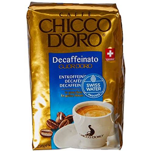 Wie wir herausfinden, wird dieser Chicco-d’Oro-Kaffee „Decaffeinato“ mit Schweizer Wasser entkoffeiniert.