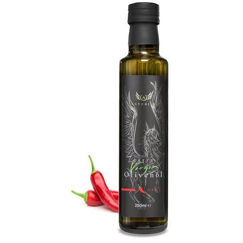 Bei den Produkten, die auf Olivenöl basieren, handelt es sich in der Regel um griechisches, spanisches oder italienisches Chiliöl.