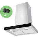 Die Ciarra CBCB6736H aus Edelstahl und Glas zeichnet sich durch hohe Durchflussleistung und flexible duale Belüftung aus. Die Wandhaube hat eine maximale Luftleistung von 750 m³ pro Stunde und einen Energieverbrauch von 45 kWh pro Jahr. Der maximale Geräuschpegel liegt mit 66 Dezibel vergleichsweise niedrig.