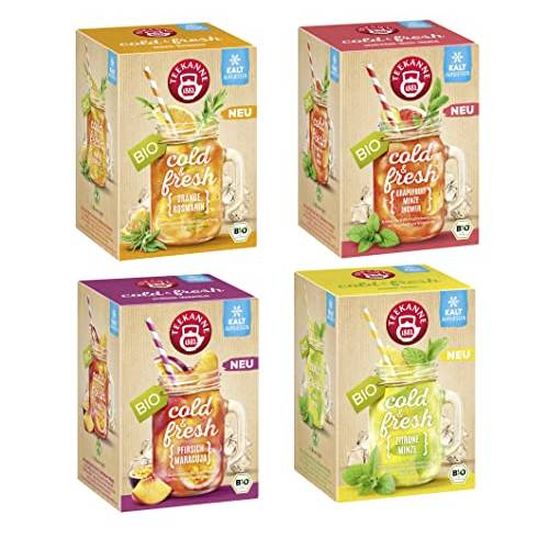 Platz 2 | Teekanne Cold & Fresh Bio | ca. 14 € | Zitrone-Minze, Pfirsich-Maracuja, Orange-Rosmarin, Grapefruit-Minze-Ingwer | Teebeutel | ![]() ![]() | |