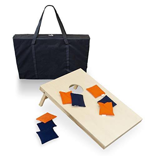 Praktisch sind laut Online-Tests Cornhole-Bretter, die Sie leicht transportieren können. Viele Modelle lassen sich einfach zusammenklappen oder -falten. Achten Sie am besten auch auf Modelle, die gleich mit der passenden Tragetasche geliefert werden.