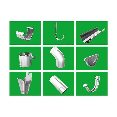 | Typen | halbrunde Dachrinne | halbrunde Dachrinne | halbrunde Dachrinne | halbrunde Dachrinne | halbrunde Dachrinne | kastenförmige Dachrinne | kastenförmige Dachrinne | halbrunde Dachrinne |