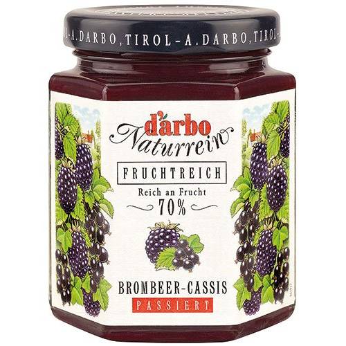 Neben Klassikern wie Waldbeer-, Heidelbeer-, Himbeer- oder Erdbeermarmelade von d’arbo gibt es im Sortiment von d’arbo auch Sorten wie Rosenmarillen-Konfitüre, Schwarzkirsche- oder Weichsel-Marmelade.