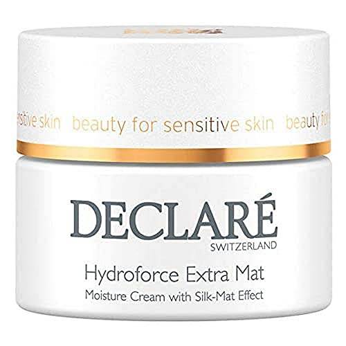 Auf diesem Bild sehen wir die Declare-Gesichtscreme „Hydroforce Extra Mat“, die ein mattes Finish erzeugt, wie der Name schon nahelegt.