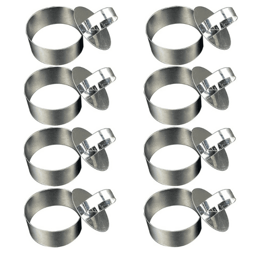 Anschließend stellt sich die Frage des Durchmessers. In der Regel haben Dessertringe mindestens 6 cm Durchmesser, große Dessertringe 10 cm Durchmesser. Dessertringe mit 6 cm Durchmesser, Dessertringe mit 7,5 cm oder Dessertringe mit 8 cm eignen sich eher für kleine und delikate Desserts.