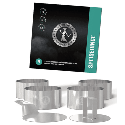 Dessertringe aus Edelstahl sind robust, langlebig und hitzebeständig, wodurch sie auch für Backrezepte geeignet sind. Edelstahl wirkt hochwertig und lässt sich leicht reinigen, rostet nicht und kann ebenso gut in den Kühlschrank oder ins Gefrierfach gestellt werden. Auch Aluminium ist recht hitzebeständig, neigt jedoch leichter zu Verformungen als Dessertringe aus Edelstahl.