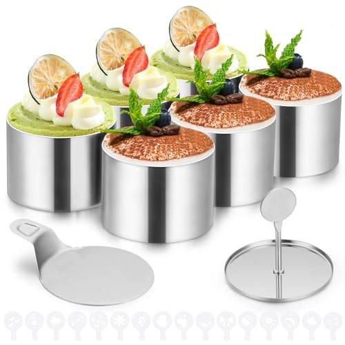 Die Dessert-Speiseringe werden oft mit einem Stampfer geliefert, wie einige Online-Tests zu Dessertringen zeigen. Mit dessen Hilfe kann von oben Druck auf die Füllung ausgeübt und somit besser in Form gebracht werden. Dazu gibt es auch einen sogenannten „Heber“, der unter dem Dessertförmchen platziert wird, um die Speise dann einfach anheben zu können und beispielsweise von der Zubereitungstheke auf einen Teller zu legen.