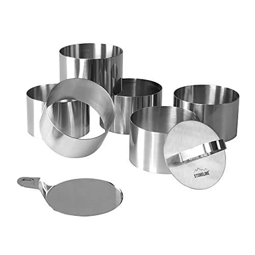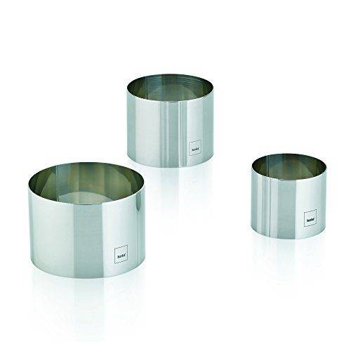 Die meisten Dessertringe sind um die 5 oder 6 cm hoch, was für kleine Törtchen oder eine Mousse ideal ist. In einigen Fällen kann es jedoch nötig sein, eine höhere Variante zu benötigen, zum Beispiel für ein Schichtdessert. Halten Sie in diesem Fall Ausschau nach Dessertringen, die hoch sind – eine Höhe von mindestens 8 cm ist empfehlenswert. In einem Home-Dessertringe-Set können neben mehreren Durchmessern auch verschiedene Höhen enthalten sein.