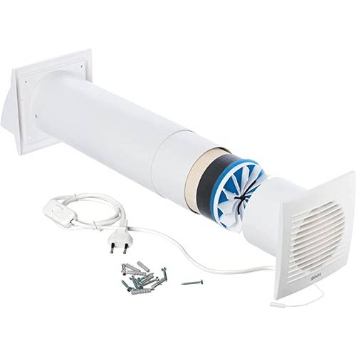 Ein herkömmlicher Wohnraumlüfter führt die verbrauchte Luft nach draußen und wird hauptsächlich in Küche und Bad eingesetzt. Funktionsweise: Sobald das Licht eingeschaltet wird, startet in der Regel ein Abluftventilator, der die verbrauchte Umgebungsluft über ein Rohr nach außen leitet. Währenddessen baut sich ein Unterdruck auf und frische Luft verbreitet sich im Inneren des jeweiligen Bereichs. Dieser Wohnraumlüfter ist zwar relativ kostengünstig, durch seine Arbeitsweise geht jedoch wertvolle Wärme verloren.