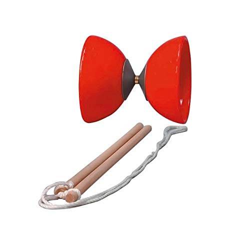 Hier sehen wir ein Hudora-Diabolo in Rot, wobei dieses auch in Schwarz und Blau erhältlich ist.