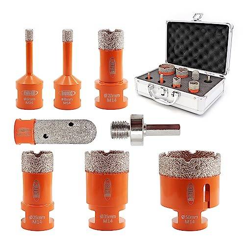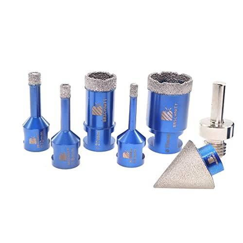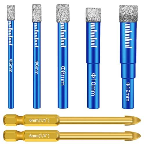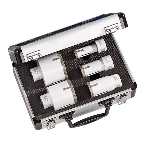 Wenn Sie einen Diamantbohrer aus gängigen Online Tests kaufen, werden Sie ihn wahrscheinlich am häufigsten bei Fliesen einsetzen. Um direkt in deren Oberfläche oder zwischen zwei Fliesen eine Bohrung für Dübel und Schrauben zu setzen, eignen sich Diamantbohrer mit 6 mm Durchmesser besonders gut. Die Löcher sind vergleichsweise klein und unauffällig, aber ausreichend groß zur Aufhängung, etwa von Spiegeln, Handtuchhaltern und Ablagen. Für verschiedene Vorhaben sind Diamantbohrer-Sets mit mehreren Größen gut geeignet. So können Sie bei Bedarf auch größere oder kleinere Löcher bohren.
