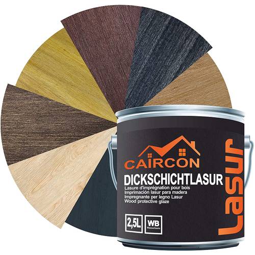 Die Dickschichtlasur von Caircon ist für außen und innen geeignet und trocknet besonders schnell, was uns gut gefallen hat. Im Vergleich zu anderen Dichschichtlasuren ist sie geruchsarm und ungiftig. Außerdem ist sie in vielen weiteren Farben erhältlich.