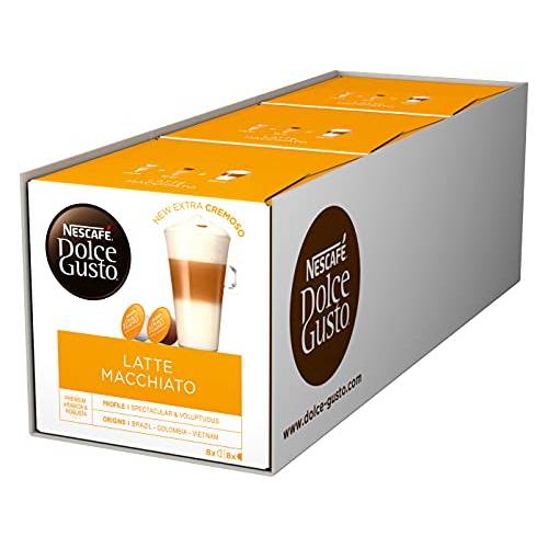 Der Nescafé Dolce Gusto Latte-Macchiato ist ein köstliches Kaffeegetränk, das in aromaversiegelten Kapseln geliefert wird. Dieses 3er-Pack enthält insgesamt 48 Kaffeekapseln und bietet Ihnen eine einfache und schnelle Zubereitung für den persönlichen Coffee-Shop-Genuss zu Hause. Der Latte Macchiato besteht aus drei verwöhnenden Schichten: Zuerst kommt der fruchtige Espresso aus reinen südamerikanischen Arabica-Bohnen für feinsten Genuss. Dann folgt heiße Milch, kombiniert mit vollmundigem Kaffee, und schließlich ein dichter, lockerer Milchschaum. Dieses Zusammenspiel der Aromen macht den Latte-Macchiato zu einem wahren Kaffee-Genuss. Die Kapseln enthalten auch Koffein, um Ihnen den nötigen Energiekick zu verleihen.