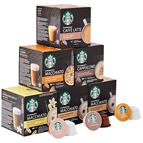 Das Starbucks Probierset White Cup Variety Pack by Nescafé Dolce Gusto bietet insgesamt 72 Kaffeekapseln in sechs verschiedenen Sorten. Wir schätzen die große Sortenvielfalt, möchten aber für Allergiker auf die Zutat von Milch hinweisen. Weitere Verpackungseinheiten und Größen sind verfügbar.