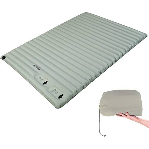 Doppel-Luftmatratzen zum Camping: Kostengünstige Angebote für Luftmatratzen, Isomatten und Luftbetten, die speziell zum Camping dienen, finden Sie in Outdoor- und Wildlife-Shops. Dazu gehört beispielsweise die Kette Decathlon. Doppel-Luftmatratzen bei Decathlon und anderen Camping-Ausstattern haben meist den Vorteil, dass deren Produkte besonders robust und für den Outdoor-Bereich gedacht sind. Dazu zählen beispielsweise Intex-Camping-Luftmatratzen oder High Peak Luftbetten. 2-Personen-Isomatten, die beim Camping unter die aufblasbare Doppel-Matratze gelegt werden, erhöhen den Liegekomfort, wenn der Boden kühl oder feucht ist.