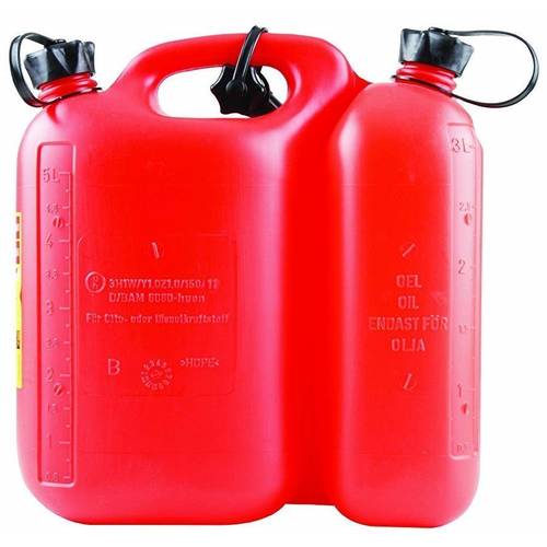 Tipp: Beachten Sie, dass große Doppelkanister relativ unhandlich sind und das Ausgießen von Kraftstoff und Öl auch weniger präzise verläuft. Gegebenenfalls ist es hier also einfacher, auf mehrere kleinere Kanister zurückzugreifen, die in der Handhabung wesentlich praktischer sind.