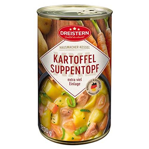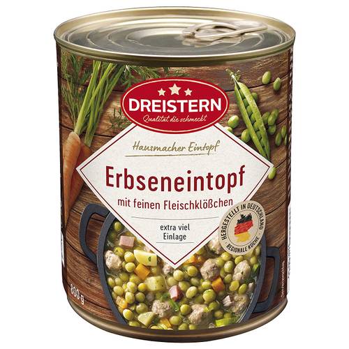 Modell | Reichenhof Bio Erbsen-Eintopf | Gut und Günstig Feuertopf | Dreistern Möhreneintopf | Dreistern Bohnentopf | Ammerländer Schinkendiele Mockturtle-Suppe | Buss Omi’s Linsen-Eintopf mit magerem Schweinefleisch | Reichenhof Bio Linsen-Eintopf | Dreistern Erbseneintopf |