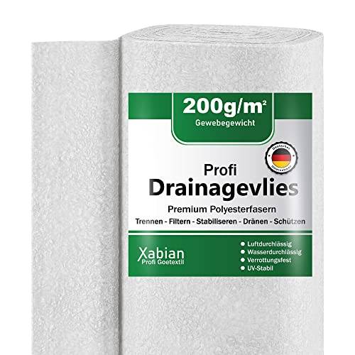 Nicht nur die Menge am Drainagevlies ist wichtig. Bevor Sie Drainagevlies kaufen, sollten Sie auch die Stoffdicke berücksichtigen. Umso stärker der Stoff, desto robuster und beständiger ist er auch. Deritex-Drainagevlies hat laut diversen Drainagevlies-Tests im Internet eine Stärke von knapp ca. 180 g/m². Allgemein ist Drainagevlies mit knapp 200 g/m² besonders haltbar. Zudem schützt eine hohe Gewebedicke besser vor Unkraut.