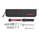 Das 17-teilige Drehmomentschlüssel-Fahrrad-Set mit 1/4-Zoll-Antrieb der Marke 3min19sec setzt sich aus allen wichtigen Teilen zusammen, die für die schnelle Fahrradreparatur benötigt werden. Das Drehmoment lässt sich in einer Spanne zwischen 1 und 25 Nm verstellen und ein akustisches Signal in Form eines leichten Knackens weist darauf hin, dass das gewünschte Drehmoment erreicht ist.