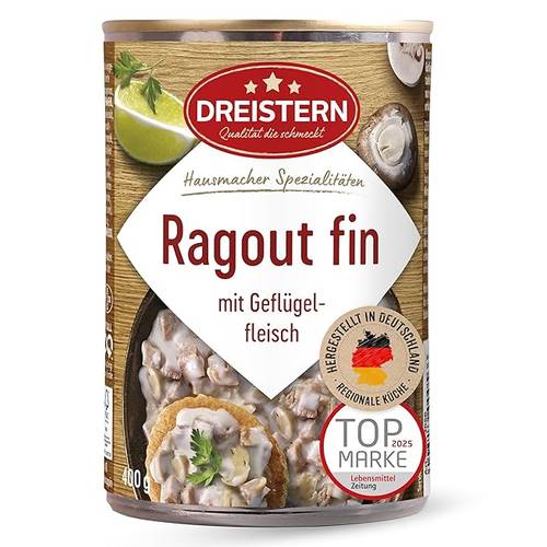 Das Sortiment des bereits 1934 gegründeten Familienunternehmens Dreistern mit Sitz in Neuruppin am See in Brandenburg setzt allem voran auf klassische Gerichte wie Dreistern-Königsberger-Klopse oder Fleischkonserven wie Dreistern-Konserven mit Rindfleisch. Die Preise der Dreistern-Konserven variieren hierbei je nach Gericht sowie Inhalt.