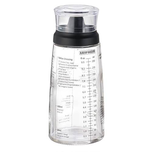 Platz 2 | Leifheit Dressing-Shaker 3195 | ca. 13 € | Glas, Kunststoff | Schwarz, Transparent | ||