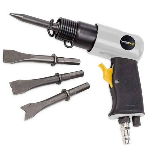 Ein Drucklufthammer hat eine oberflächliche Ähnlichkeit mit einer Pistole, da er aus einem Griff, einem Abzug und einem Lauf besteht. Am Griff befindet sich normalerweise ein Anschluss für eine Druckluftquelle, die dem Druckluftwerkzeug Leben einhaucht. Druckluft kann in den Lauf des Mechanismus eindringen, wenn der Abzug gedrückt wird. Ein im Lauf befindlicher Kolben wird dann aktiviert und sorgt für eine sich wiederholende Bewegung. Wenn ein Werkzeug in den Lauf eingeführt wird, wird es laufend nach vorn geschoben, um eine Meißel-, Hammer- oder Spaltbewegung zu erwirken.