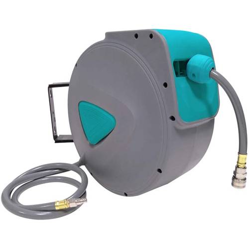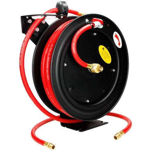 Bei einem Druckluftschlauch-Aufroller mit 5 m ist eine fehlende automatische Schlauchrückführung vielleicht noch verschmerzbar. Ab einer Länge von 10 Metern empfiehlt sich das automatische Aufrollen des Schlauchs aber in jedem Fall. Wird der Schlauch nicht mehr benötigt, fährt er automatisch zurück in die Trommel. Sie müssen lediglich darauf achten, dass keine Knoten darin sind.