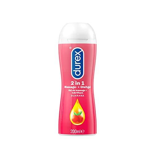 Das Gleitgel 2 in 1 und auch das Guarana-Gleitgel von Durex eignen sich neben der Anwendung beim Geschlechtsverkehr auch für sinnliche Massagen. Durch die Zugabe von verschiedenen Extrakten wie Aloe vera oder Guarana pflegt das Gleitgel Ihren Körper und sorgt für ein sanftes Hautgefühl.