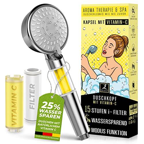 Wenn Sie großen Wert auf den pflegenden Aspekt legen, ist der beste Duschkopf mit Kalkfilter für Sie womöglich einer mit zusätzlichem Vitamin-C-Block. Dieser sorgt nicht nur für ein wohliges Aroma beim Duschen, sondern wirkt auch extra stark gegen Chemikalien und beugt der Hautalterung vor.