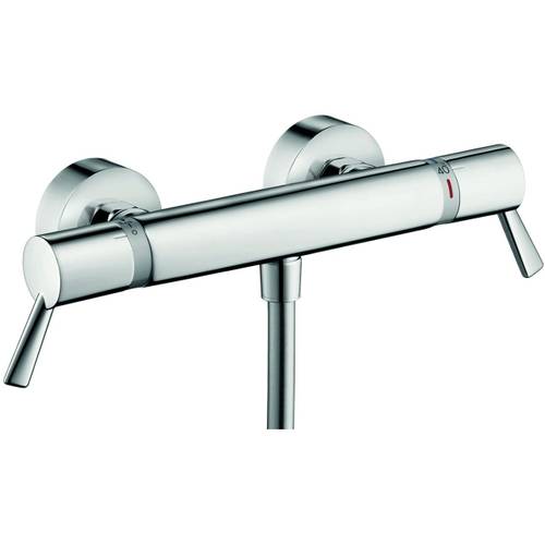 | Das Duschthermostat besitzt einen Regler für den Wasserstrahl-Druck und einen für die Wasser-Temperatur. Es kann durch die interne Mischbatterie automatisch heißes und kaltes Wasser mischen, damit die Wassertemperatur jederzeit konstant bleibt. |