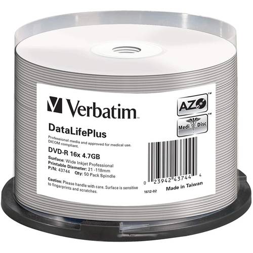 Wie wir erfahren, hat eine solche Verbatim-DVD-R eine Kapazität von 4,7 GB.