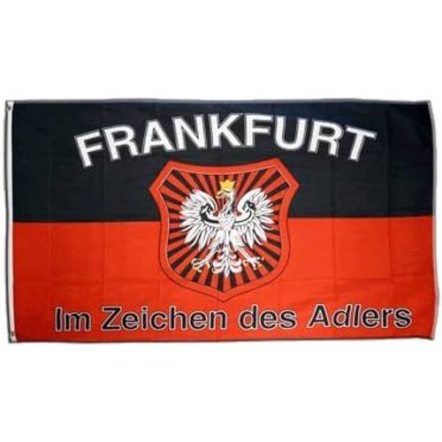 Der 1899 gegründete Sportverein Eintracht Frankfurt gehörte mit dessen Fußballabteilung zu den 16 Fußballvereinen, die im Jahr 1963 die erste Saison der Fußball-Bundesliga ausgespielt haben. Der Adler der Fahne hat seinen Ursprung im Wappen der Stadt, das ebenfalls von einem Adler geziert wird. Die Fahne von Eintracht Frankfurt ist in verschiedenen Farbversionen erhältlich, die allesamt auf Rot, Weiß oder Schwarz basieren. Die Farben Rot und Weiß sind von Vorgängervereinen der heutigen Eintracht Frankfurt inspiriert.