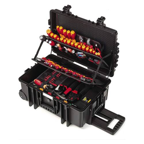 Möchten Sie hingegen einen Sicherungskasten neu installieren oder stehen andere umfangreiche Arbeiten an, so sollte der Elektriker-Werkzeugkoffer im XXL-Format nicht fehlen. Voll bestückt wiegt ein solcher jedoch schnell einmal 10, bei besonders großen Modellen auch fast 20 kg.