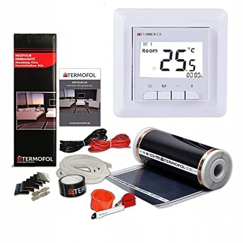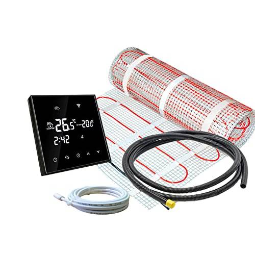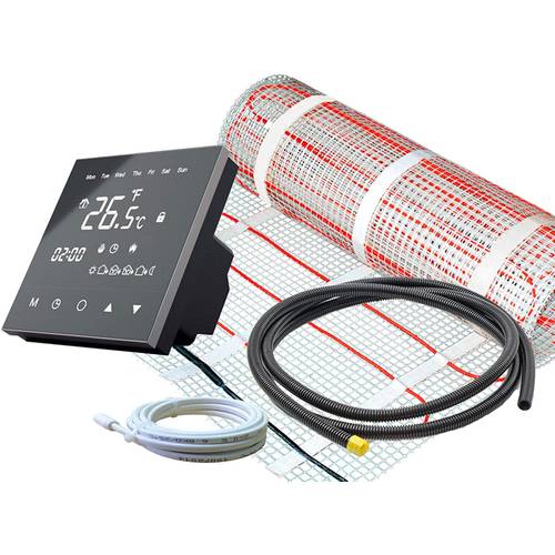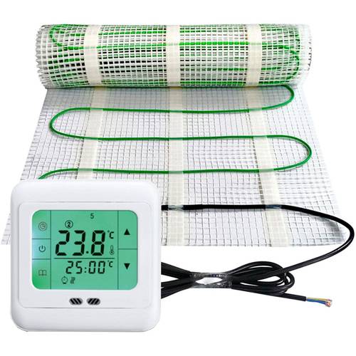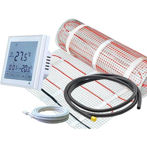 Ein elektrisches Fußbodenheizung-Set enthält zusätzlich ein Thermostat und einen Temperatursensor.
