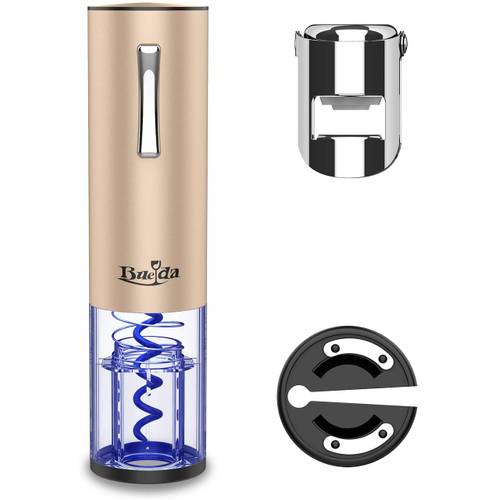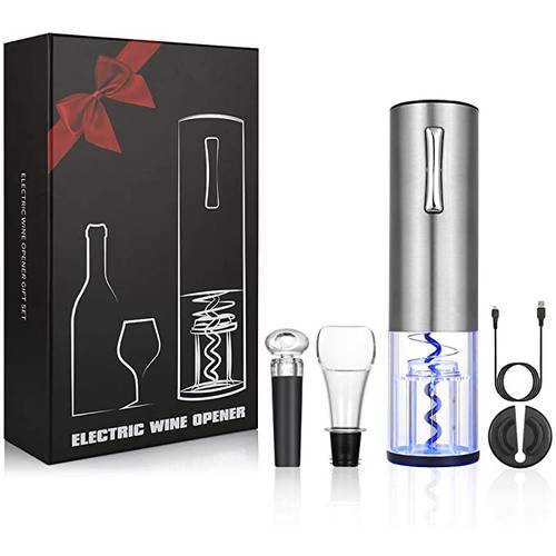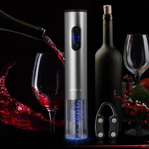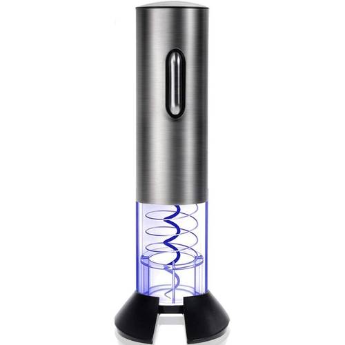 Ein elektrischer Weinöffner oder Korkenzieher mit Akku oder Batterien ist ein Gerät, das dabei hilft, Weinflaschen und andere Flaschen mit Korkverschluss zu öffnen. Meistens besteht der elektrische Korkenzieher aus einem zylinderförmigem Gehäuse, einem elektrischen Motor und einer Spindel. Durch eine Öffnung auf der Unterseite stülpen Sie den elektrischen Korkenzieher auf die Flasche. Per Knopfdruck bohrt sich die Spindel in den Natur- oder Kunststoffkorken, windet sich in die entgegengesetzte Richtung und zieht mit der rotierenden Drehbewegung den Korken aus der Flasche heraus. Dabei sollte der elektrische Korkenzieher für Weinflaschen ein breites Gehäuse haben, um auf unterschiedlichen Flaschen seinen Dienst verrichten zu können.