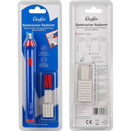 Hierfür erhalten Sie elektrische Radiergummis von unterschiedlichen Herstellern. Als beliebt gelten unter anderem elektrische Radierer von Läufer, Derwent oder auch elektrische Radiergummis von Mont-Marte. Wie gezielt Sie mit welchen elektrischen Radierstiften radieren, kann sich modellabhängig unterscheiden. Eine besonders hohe Präzision können Sie diversen Online-Tests zufolge mittels elektrischer Radiergummi-Stifte erreichen.
