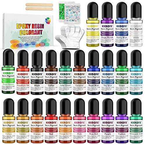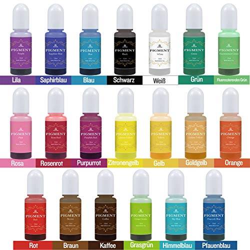 Flüssige Epoxidharz-Farbe wird meist bei der Herstellung von Schmuck- oder Möbelstücken verwendet. Nur wenige Tropfen reichen aus, um eine hohe Farbintensität zu erreichen. Achten Sie auf eine gute Dosierbarkeit der Fläschchen. Die meisten sind mit einer Spritztülle ausgestattet, sodass Sie die Tropfen gut dosieren können.