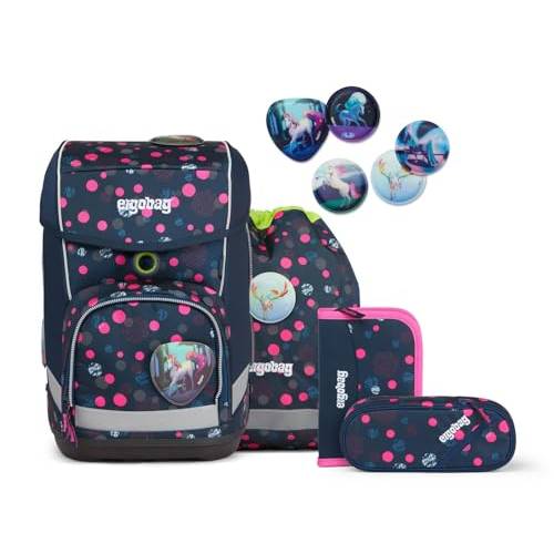 In dem Set ERG-SET-002-9L9 von Ergobag sind sechs Einzelteile enthalten. Dazu gehören der Ranzen, ein Sportbeutel, verschiedene Etuis sowie eine Heftebox. Kinder können ihren Schulranzen mithilfe der Klettbilder dekorieren und individualisieren. Uns gefällt die praktische Aufteilung des 1,1 kg leichten Schulrucksacks. Für Kinder ist dieses Modell im Schulalltag ideal und wir empfehlen es gerne weiter.