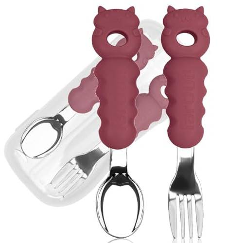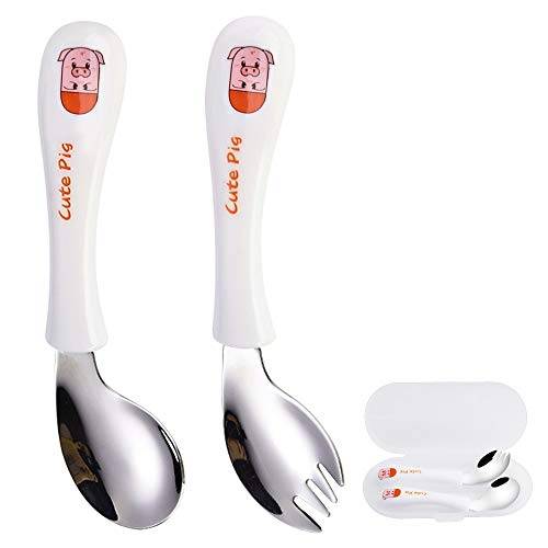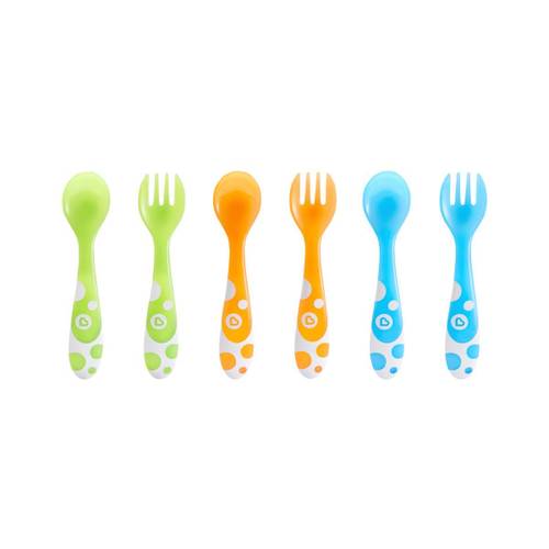 Die Gabeln bei Esslernbestecken sind normalerweise nicht dafür geeignet, um Essen aufzupieksen. Die Zinken sind abgerundet und recht kurz, damit sich die Kleinen nicht versehentlich damit verletzen. Außerdem ist das Material häufig etwas nachgiebig.