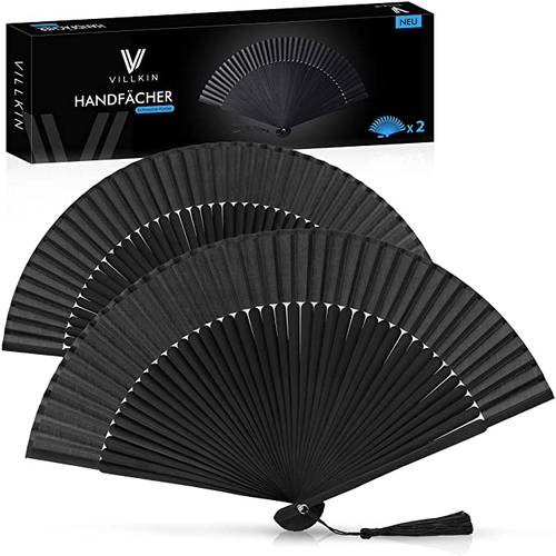 Platz 1 | Maitys Silk Hand Fan-01 | ca. 14 € | Kunststoff, Seide | Schwarz | ![]() ![]() | |