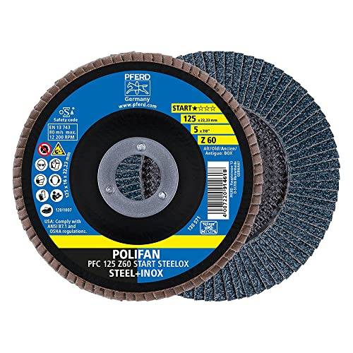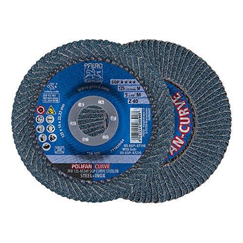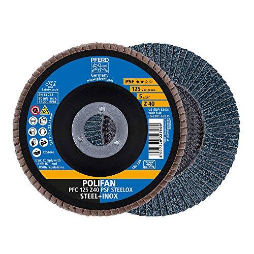 Alle Werte unter 80 gehören zur Kategorie der groben Körnung. Die Fächerscheibe von Pferd, also die Polifan-Scheibe, hat eine 60er-Körnung und ist somit grob. Eine Fächerscheibe der Größe 125 mm und einer 40er-Körnung ist sehr grob.