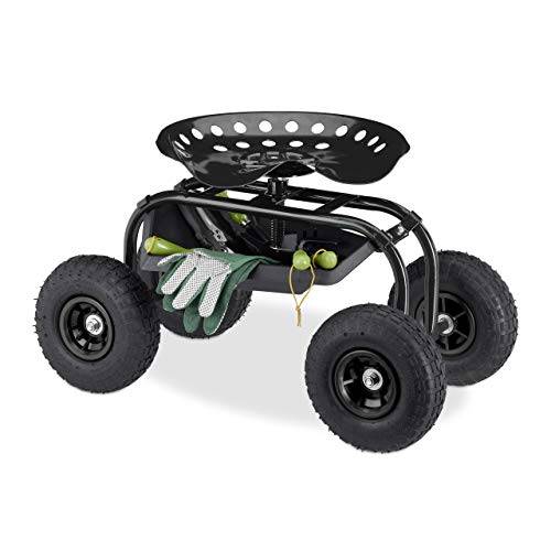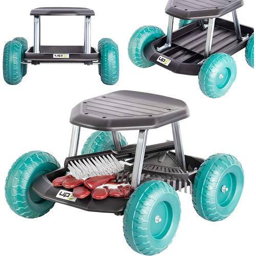 Es gibt Rollsitze, deren Sitz ist aus Metall, und es gibt andere Modelle von Gartenwagen, deren Sitz ist aus Plastik. In verschiedenen fahrbaren-Gartensitz-Tests können Sie nachlesen, dass manche Wagen sogar einen gepolsterten Sitz haben. Achten Sie, bevor Sie einen fahrbaren Gartensitz kaufen, auf das Material. Schließlich sollen Sie gemütlich darauf sitzen. Bei den besten fahrbaren Gartensitzen lässt sich der Sitz auch in der Höhe verstellen und auch drehen.